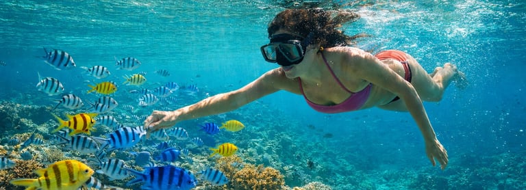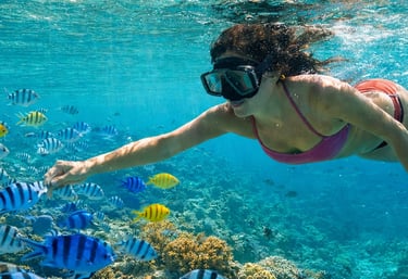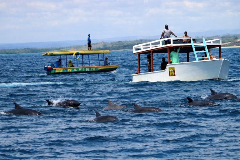 Experiences may include snorkeling above coral reefs, dolphin watching (depending on conditions), canoeing through mangrove channels, and discovering local culture and history.